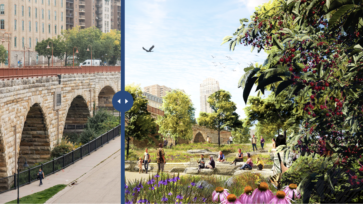 The design includes bluff restoration inspired by natural limestone, a new 25-foot water cascade, and ADA-accessible paths. Construction begins next spring and runs through 2028, coinciding with Owamni restaurant’s move to the Guthrie. City leaders say the project reflects Minneapolis’ commitment to centering Dakota voices and honoring the land.